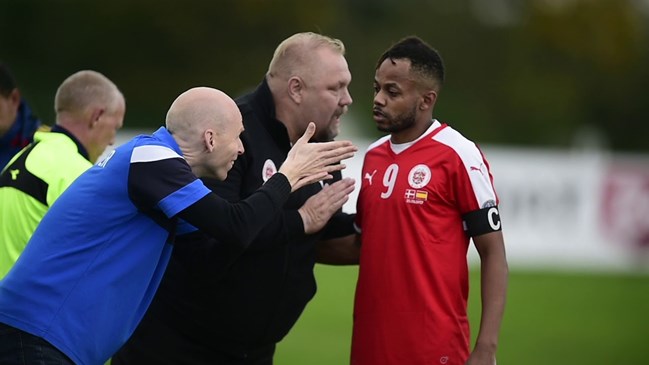 Nassor Salim får indput af landstræner Per Sørensen i kampen mod Spanien foto: Morten Pape