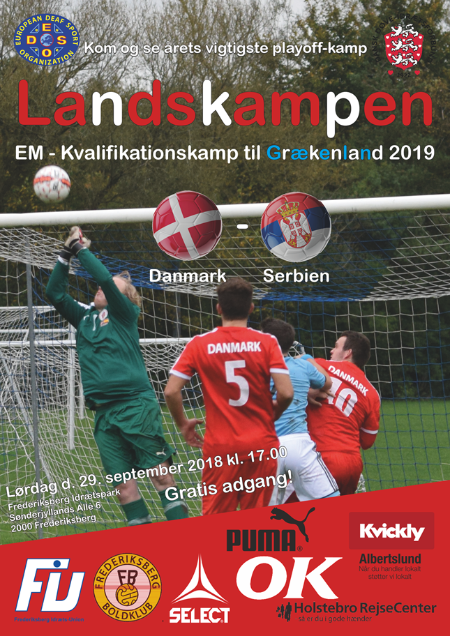 Det er en alt afgørende kvalifikations kamp til EM i GRækenland i 2019, det dansk døvelandshold skal ud i lørdag den 29 september kl. 17.00 på Frederiksberg Idrætspark, hvor modstanderen er Serbien.