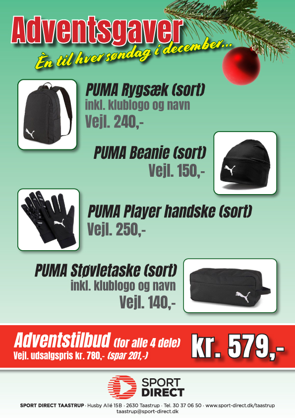 Sport Direct Taastrup og Puma er på banen med tilbud på lækre produkter til HIC'ere i alle aldre, som fint kan bruges til både advents- og julegaver. Tilbudene kan købes direkte på HIC's klubshop hos Sport Direct.