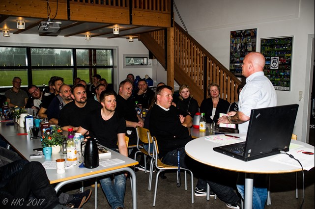 Ca 35 trænere og ledere var troppet op til HIC's arrangement i klubhuset. Stig Tøfting ville lægge vejen forbi og fortælle om sin flotte karriere på klub- og landshold.