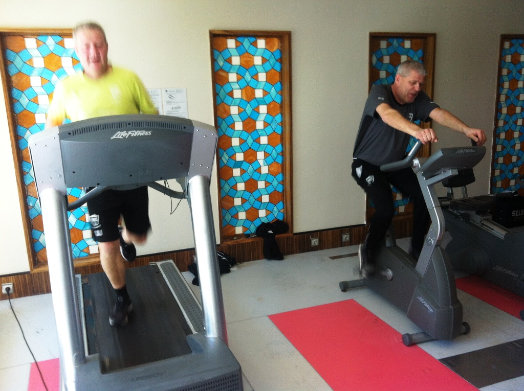 Chefholdlederen og hans lærling var i motionscentret på førstedagen i Tyrkiet.