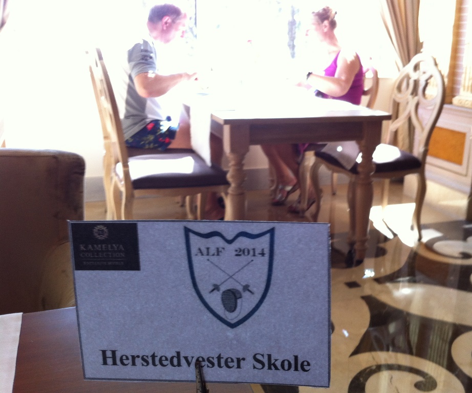 Det blev tydeligt dokumenteret ved ankomsten til turens første måltid, mandagens morgenmad. Tidligere års HIC-logo, lamineret og skinnende for bordenden, var i år udskiftet med et skilt med påskriften "Herstedvester Skole" og ledsaget af en logo for AFL - efter alt at dømme en eller anden udenlandsk fægteklub!
