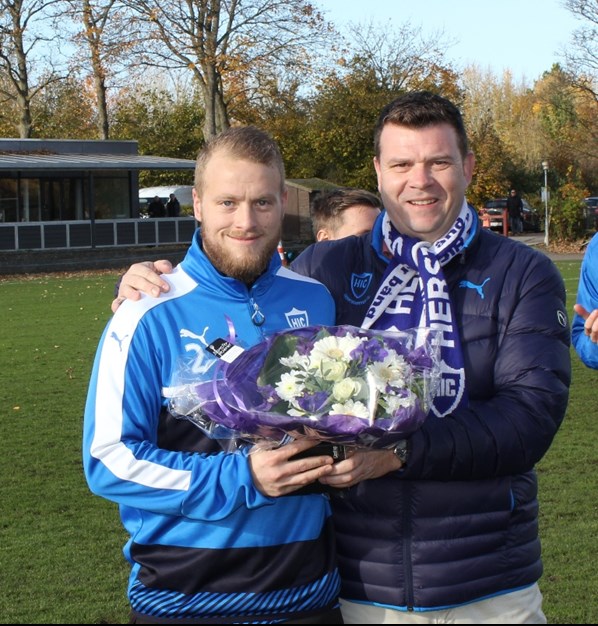 Forud for kampen blev Frederic Vibe og Casper Beck hyldet, da de begge i år har passeret 200 kampe i den blå trøje på HIC’s 1. hold. Et stort tillykke til et par rigtige HIC-drenge, som dog fortsat har et stykke op til Anders Herholdts klubrekord med over 360 1. holdskampe.