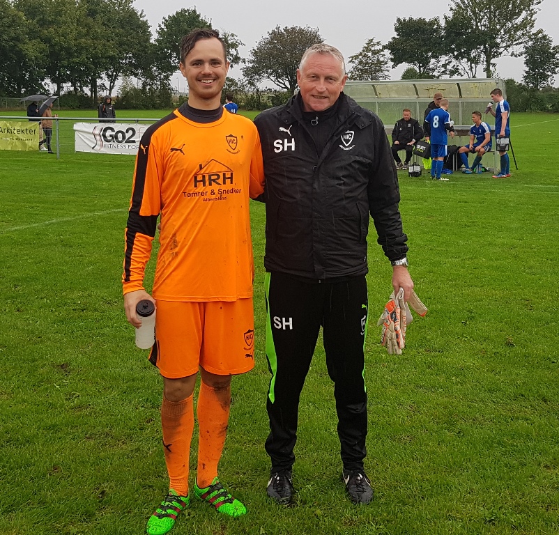 Dagens HIC-målscorer målmand Tobias Nannestad i selskab med målmandstræner Søren Hansen