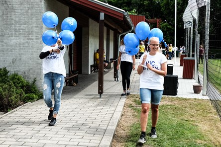 Balloner fra Nillers Auto blev pustet op og hængt op, så der var blåt rundt om banen