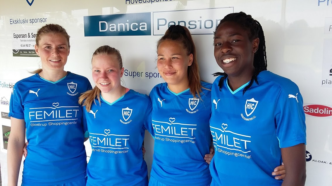 Kampens målscorer fra venstre Stine Skov Jensen, Pernille Raun Olsen, Sarah Lyberth og Lucky Brown