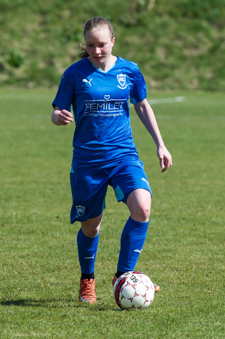 Første halvleg bølgede da også frem og tilbage, og Virum-Sorgenfri fandt da også hurtigst netmaskerne, da de bragte sig foran i det 17. minut. Det bragte dog ikke HIC-spillerne ud af kurs, da disse ufortrødent fortsatte med at kæmpe med alt, hvad de havde i sig. HIC stillede op i en 3-5-2-formation, hvilket gav masser af muligheder for at sende deres wingbacks afsted på siderne. Det var dog ikke i åbent spil, at reduceringen kort før halvleg faldt. Derimod sparkede Pernille Raun Olsen på flotteste vis bolden i kassen på direkte hjørne i det 37. minut til stor jubel for medspillere, trænere og tilskuere.