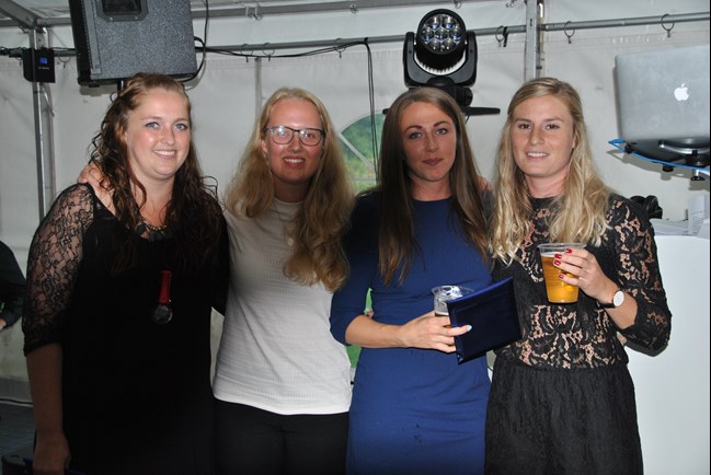 Fra venstre Julie "Kulle" Bøge-Rasmussen (Årets fighter på 8-mandsholdet), Julie Korsgaard Christiansen (præsenterede Kvindesenior for forsamlingen) Kristine "Kris" Thane Nielsen (Årets spiller i Kvindesenior) og Stine Skov Jensen (Årets fighter på sjællandsserieholdet)